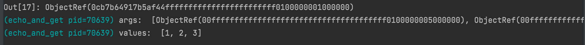# object를 top-level 인자로 echo에 전달. ray는 인자를 역참조. -> echo는 문자 그대로의 값(1,2,3)을 볼 수 있다