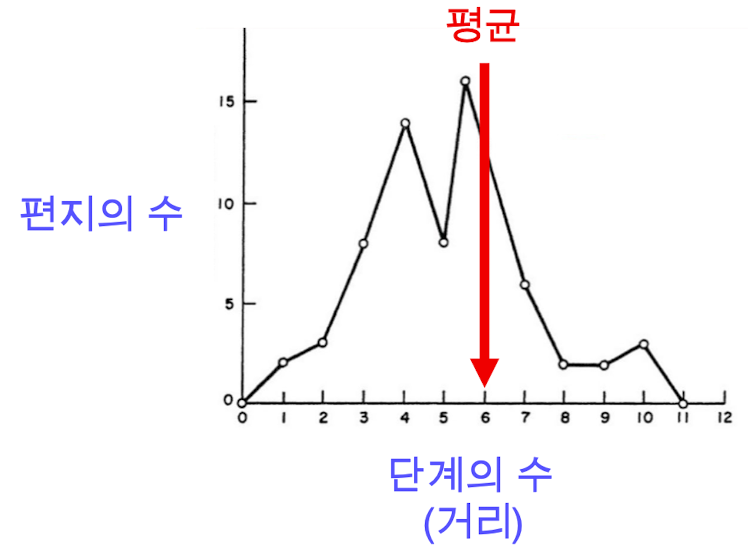 - 결과 : 실험 대상 중 25%의 편지만 도착했지만 평균적으로 6단계 만을 거침