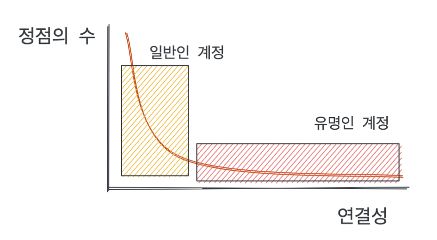 - 즉, 연결성이 매운 높은 허브(Hub) 정점이 존재