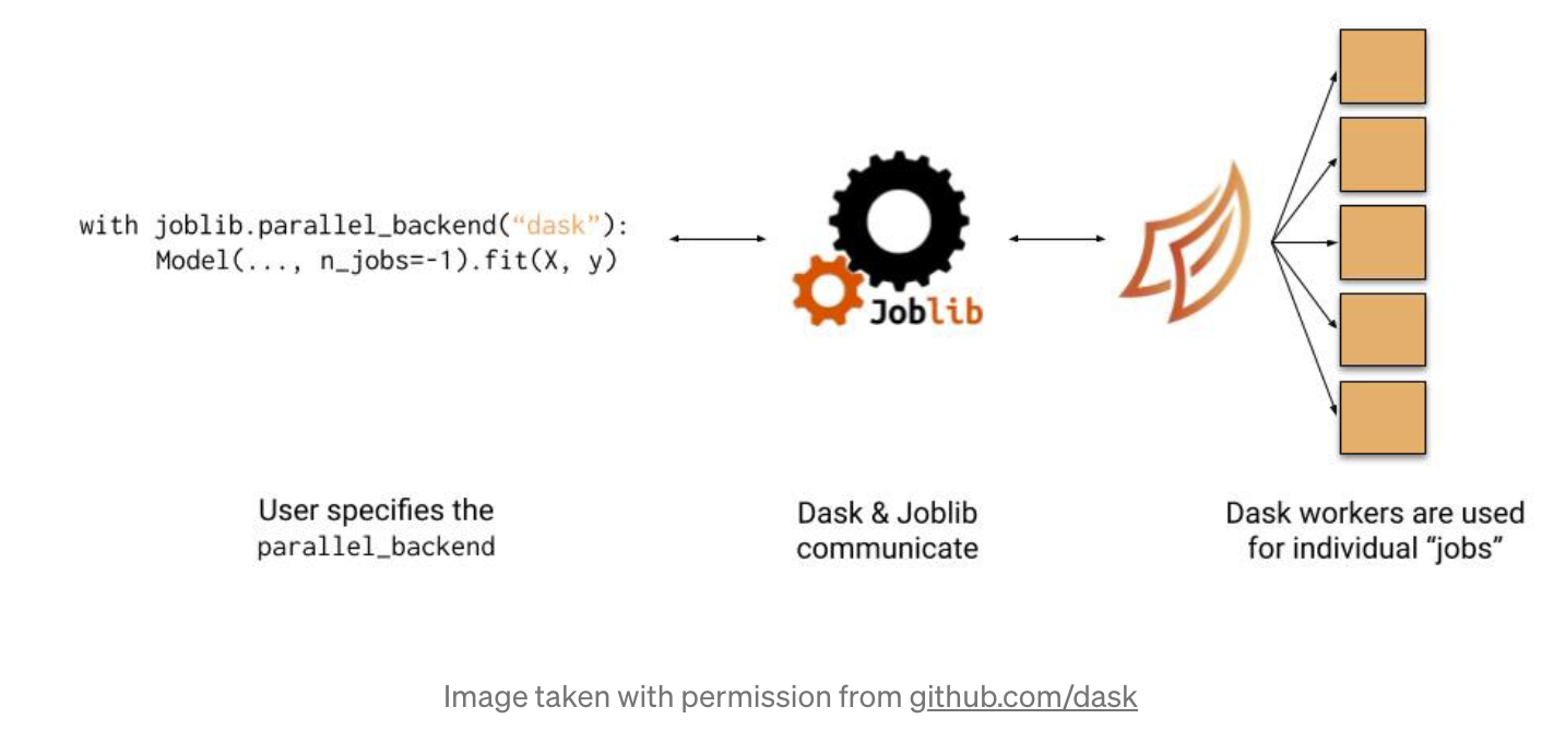 dask는 선형 모델, 나이브 베이즈, 클러스터링, 차원축소, xgboost 등의 알고리즘을 제공하지만, 또한 scikit-learn 모델의 병렬 화도 지원한다.