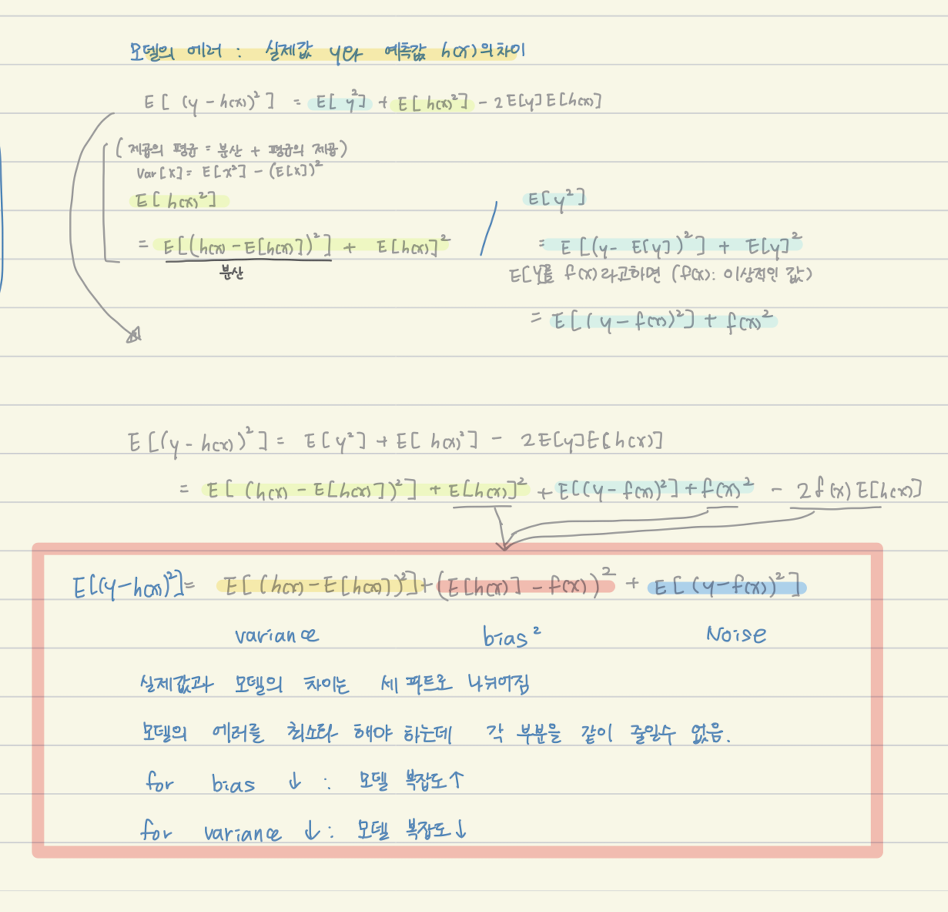 즉, 좋은 모델이란 적절한 수준의 bias와 variance의 균형을 맞추는 것이다.